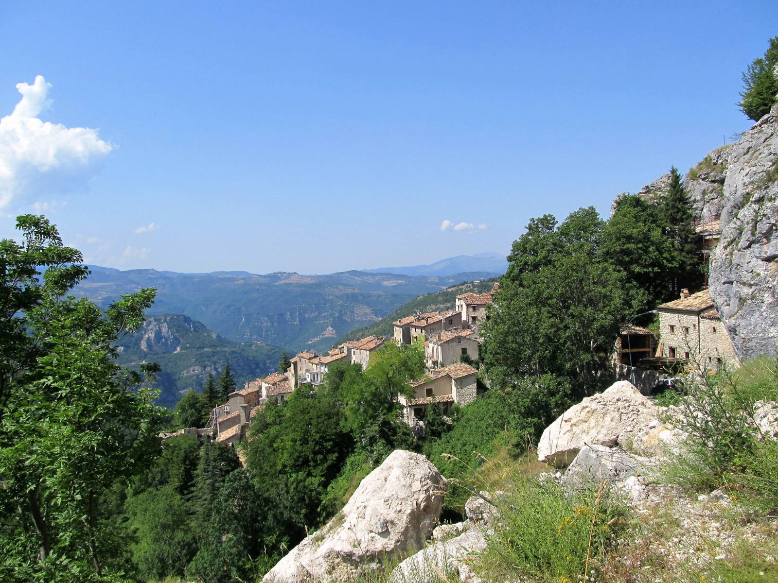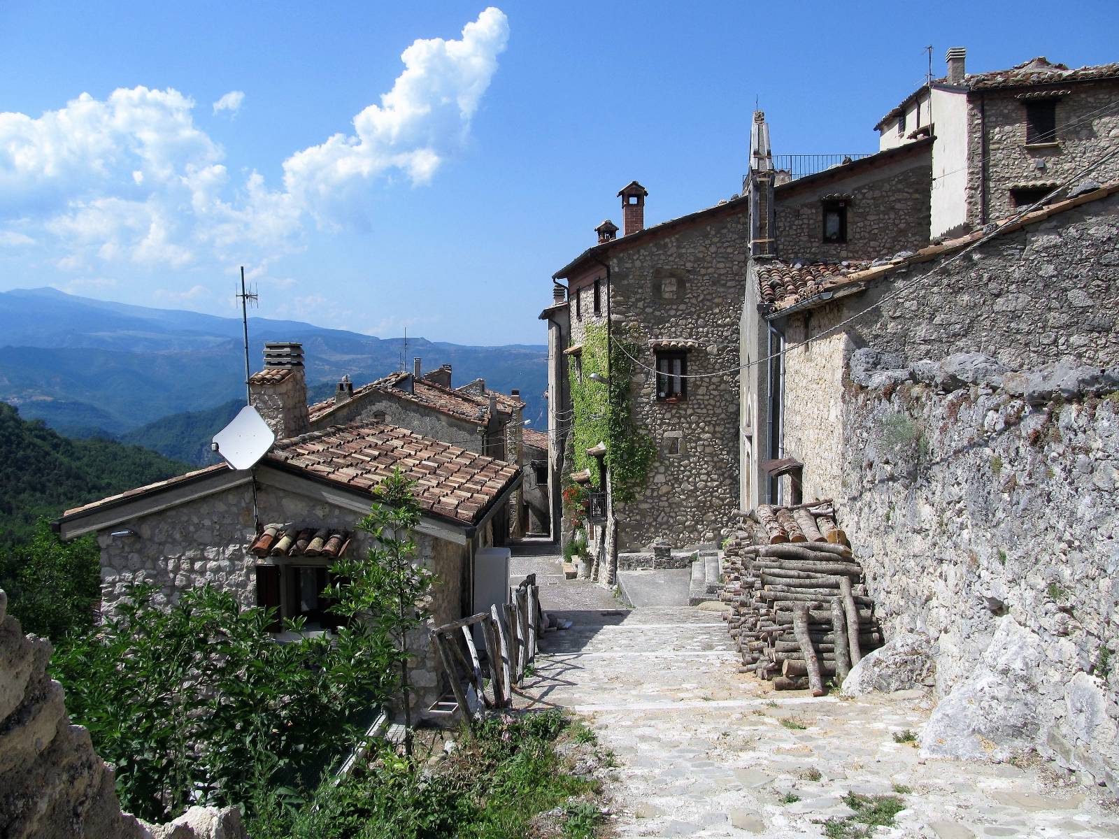 Santo Stefano di Sessanio accoglie il camminatore con i suoi vicoli lastricati, le case in pietra e un modello di recupero e di valorizzazione turistica attento e sostenibile, oltre alla rinomata produzione di lenticchie.