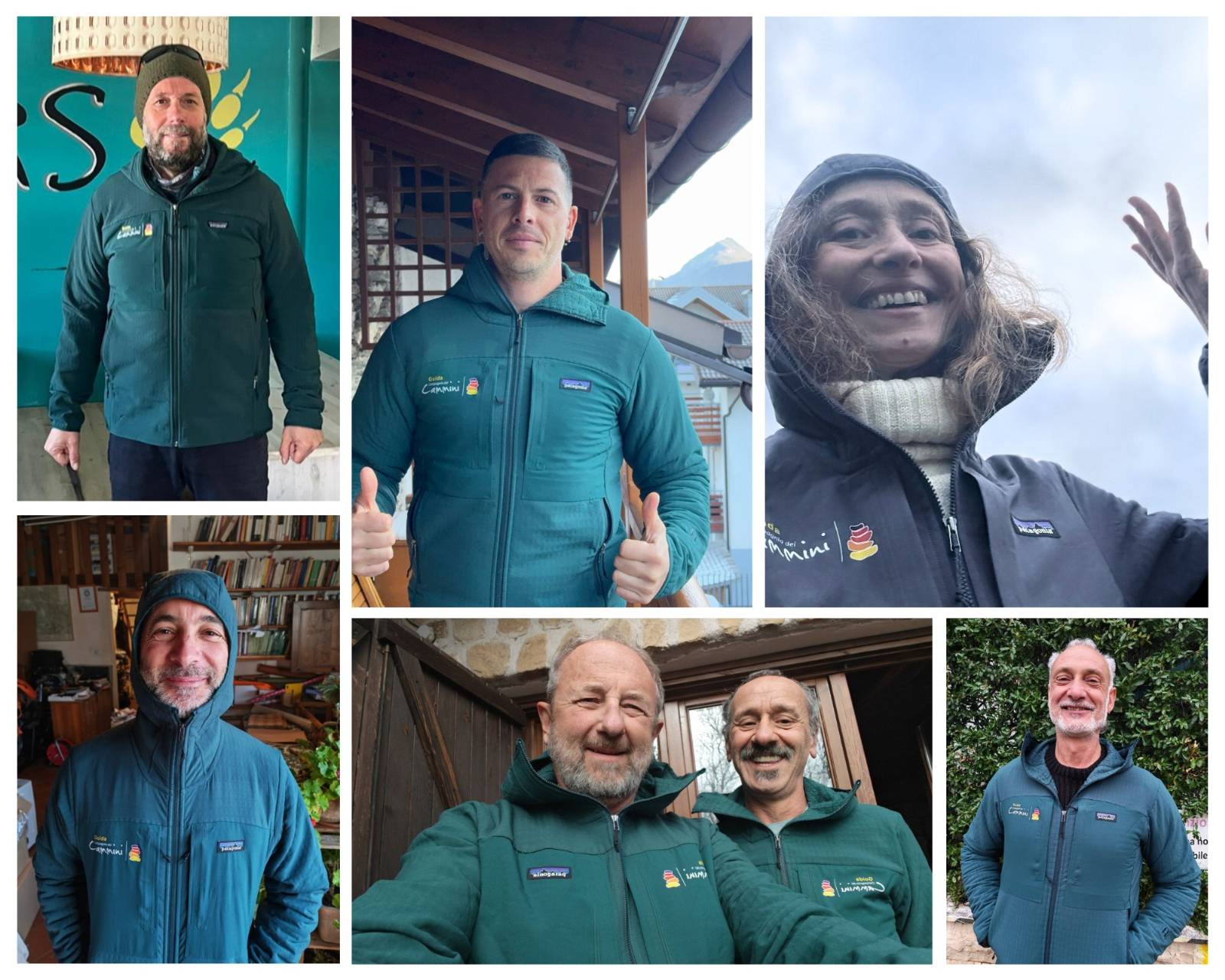 In copertina le foto di alcune guide della Compagnia dei Cammini con la nuova giacca dotazione del nuovo anno. Tutte le guide condividono gli auguri di un anno in cammino e di un anno di pace.