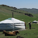 Trasferimento in Van e fuoristrada presso il villaggio di Tarialan, visita del villaggio (vedi progetto di solidarietà), cena e pernottamento in tenda accanto alla gher della famiglia della guida locale