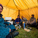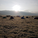 Notti: in tenda, condividendo un numero adeguato di tende tecniche da trekking portate dai partecipanti; indispensabile che le tende abbiano absidi sotto cui ricoverare zaini e scarponi durante la notte; chi non ne possedesse una tecnicamente adeguata potrà valutare se acquistarla o condividere quelle di altri partecipanti (previo accordo). L’accampamento sarà prevalentemente in luoghi selvaggi e disabitati, presso un corso d’acqua o lago per cucinare e bere; in alcune occasioni, si potrà dormire in gher locali.