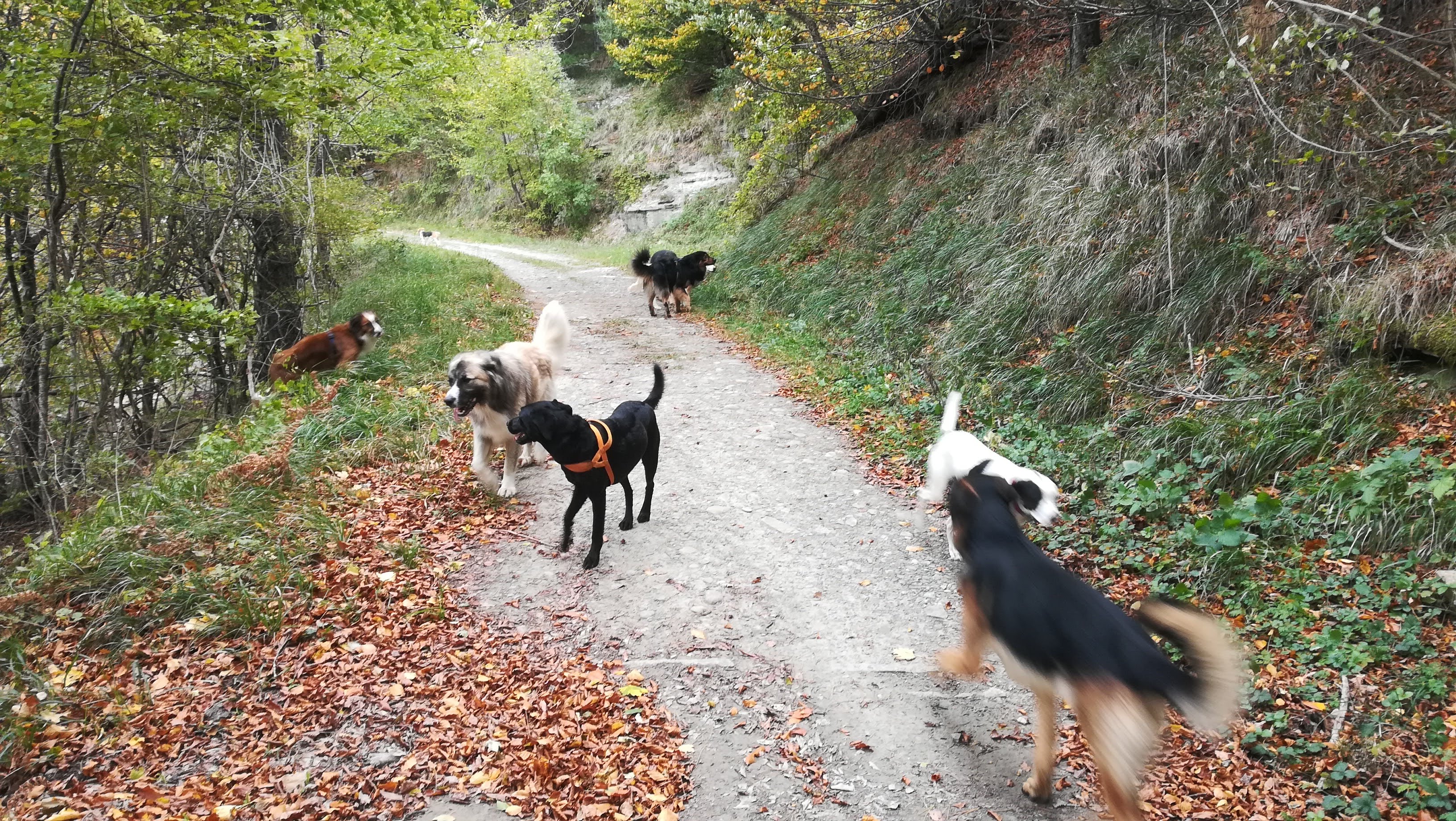 Le nostre attività prevedono momenti di libertà dei cani dal guinzaglio, e durante la libertà la convivenza con altri cani, persone e animali.